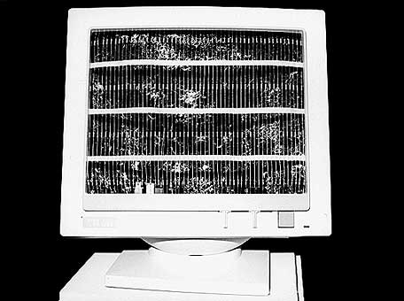 Bildschirm, Schaltkreise, Widerstände,koloriertes Moos